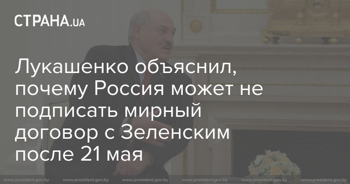 Президент Беларуси Александр Лукашенко утверждает, что РФ может не подписать мирный договор с Владимиром Зеленским после 21 мая 2024 года из-за завершения его президентской каденции.