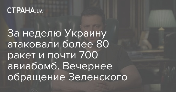 За неделю Украину атаковали более 80 ракет и почти 700 авиабомб. Вечернее обращение Зеленского