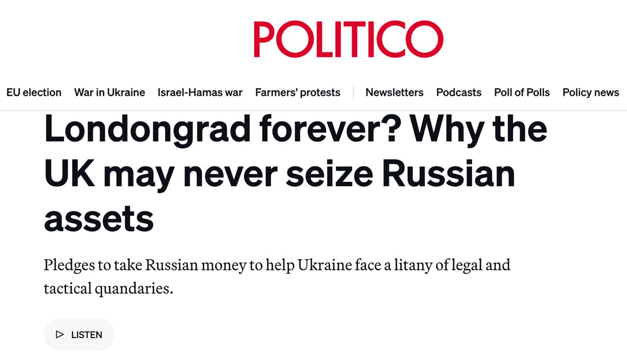 Великобритания, вероятно, никогда не сможет конфисковать российские активы. Так считает финансовый корреспондент Politico Элеонора Майерс.