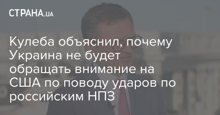 Глава МИД Украины Дмитрий Кулеба дал понять, что Киев не будет слушать США относительно ненанесения ударов по нефтеперерабатывающим заводам (НПЗ) России, поскольку Вашингтон не дает системы ПВО.