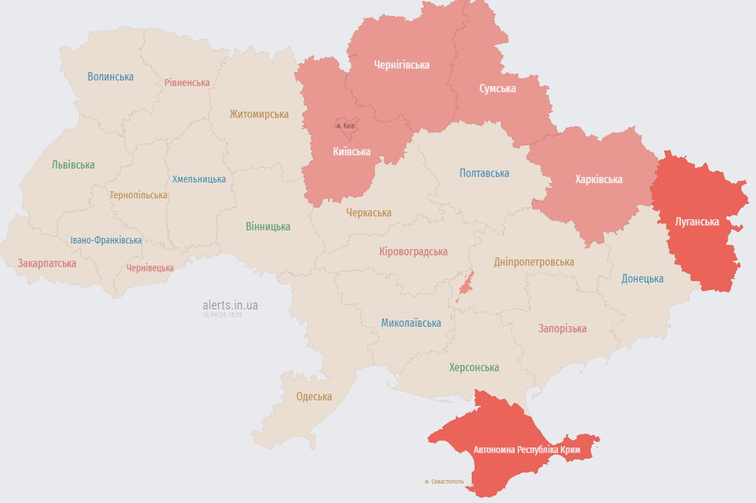 18.32 Воздушная тревога в Киеве, а также в северных и восточных областях.