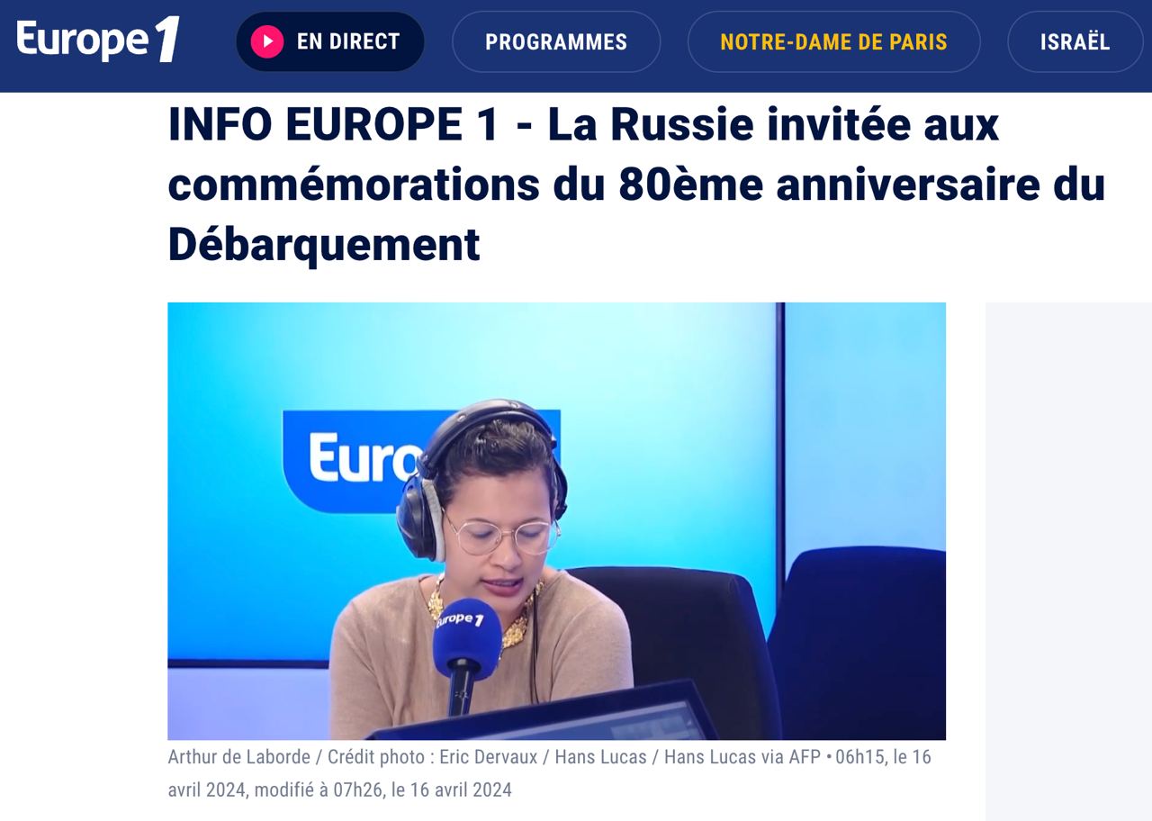Франция пригласила Россию на чествование 80-й годовщины высадки союзников в Нормандии 6 июня - десантной операции союзников во главе с США, которая в 1944 году открыла второй фронт против гитлеровской Германии. Первым фронтом считался восточный, где против Германии воевал СССР.