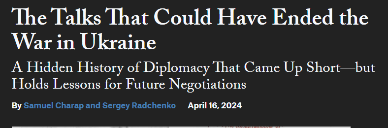 В статье фактически подтверждается версия о том, что одной из причин провала переговоров стала негативная позиция по отношению к ним США и Великобритании. А также нежелание Вашингтона давать гарантии безопасности Киеву, которые бы подразумевали вступление Америки в войну в случае нового нападения на Украину.