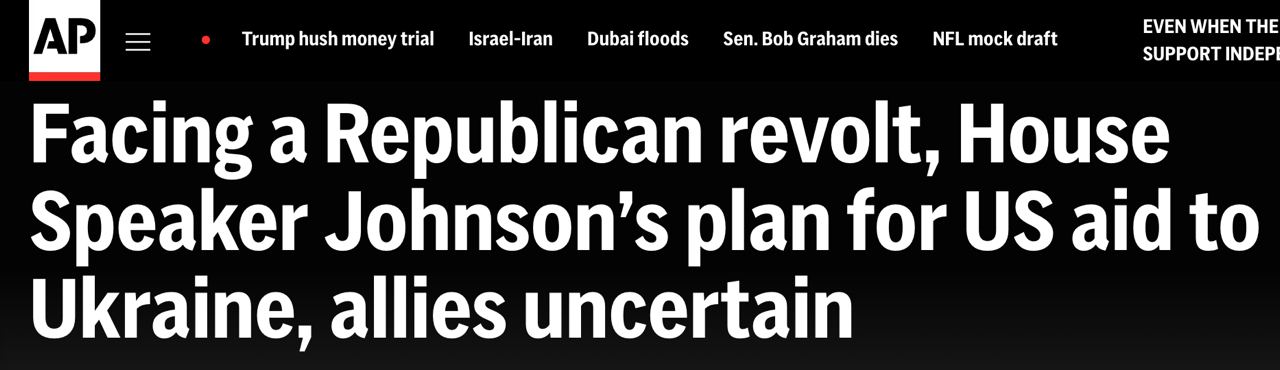 "Некоторые предсказали, что спикер Майк Джонсон не сможет провести голосование по пакету на этой неделе, как планировалось", - пишет AP.