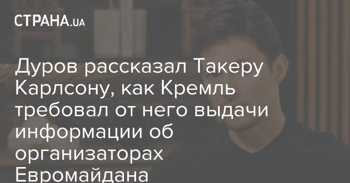 Создатель мессенджера Telegram Павел Дуров в интервью американскому журналисту Такеру Карлсону рассказал, что власти РФ в 2013-2014 годах требовали от него выдать частную информацию об организаторах Евромайдана в Украине, которую имела социальная сеть "Вконтакте" (ВК).