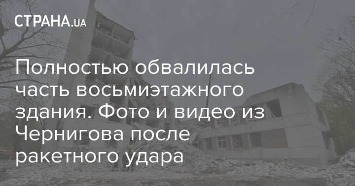 Полностью обвалилась часть восьмиэтажного здания. Фото и видео из Чернигова после ракетного удара