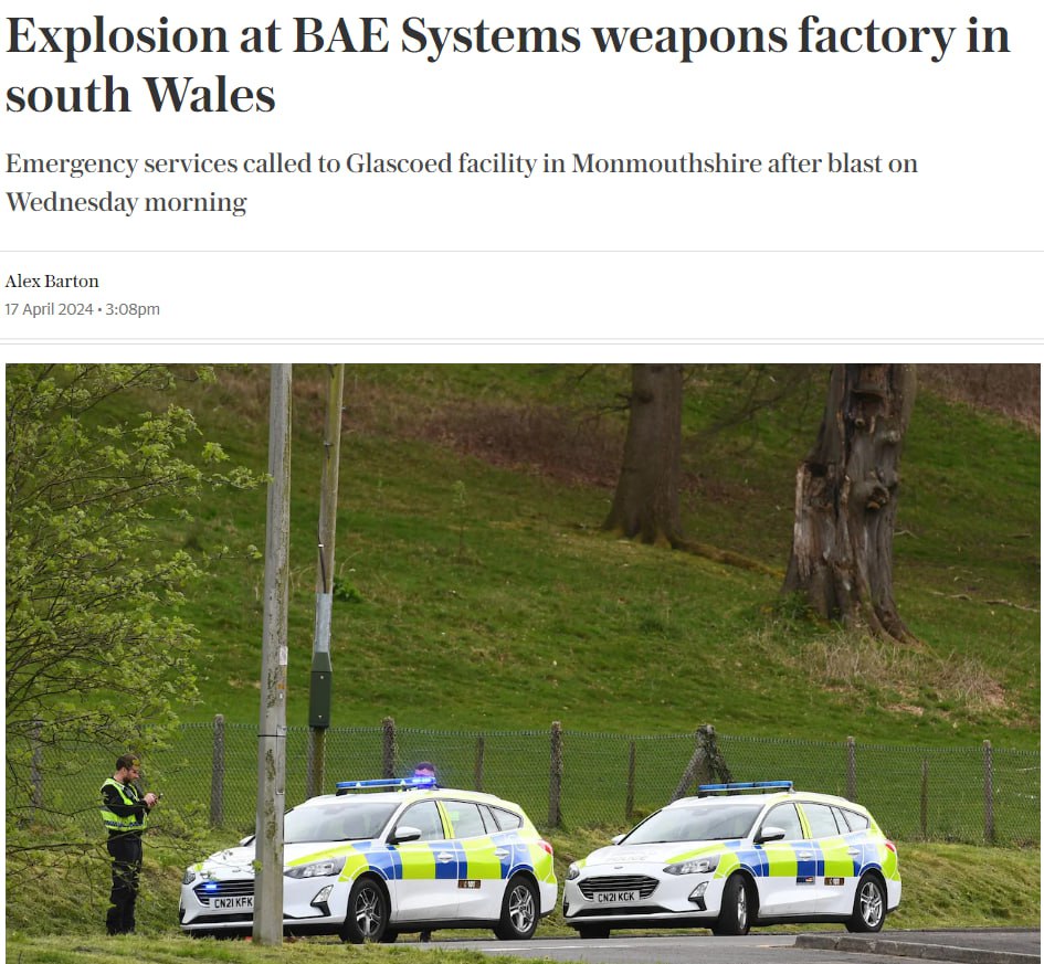 На заводе по производству компонентов для боеприпасов британской компании BAE Systems в Уэльсе произошел взрыв.