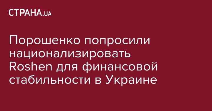Порошенко попросили национализировать Roshen для финансовой стабильности в Украине