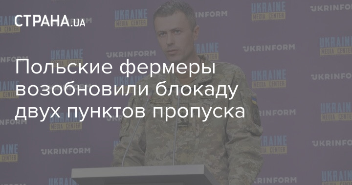 "К сожалению, вчера получили от польских пограничников предварительную информацию о том, что сегодня около 9 часов польские фермеры могут возобновить свои действия по блокированию движения по направлению "Краковца" и пункту пропуска "Шегини"", - рассказал представитель Госпогранслужбы Андрей Демченко в эфире телемарафона.