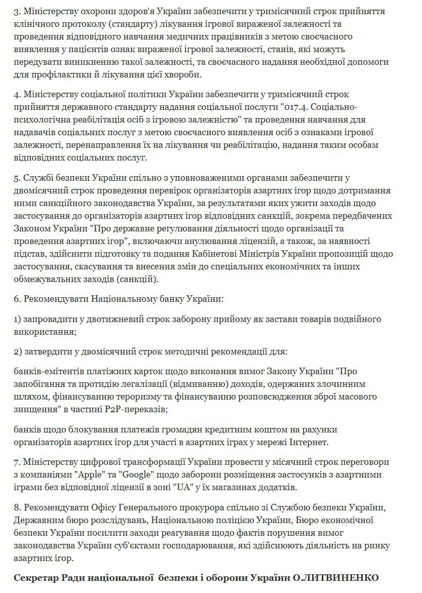 10:35 Президент Украины Владимир Зеленский своим указом ограничил азартные игры в интернете. Он ввел в действие решение СНБО, которое предполагает: