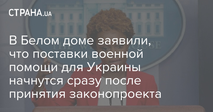 Спикер Белого дома Карин Жан-Пьер заявила, что поставки вооружений Украине начнутся сразу же после того, как законопроект о продлении финансирования помощи будет принят Конгрессом США.