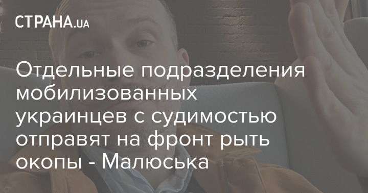 Отдельные подразделения мобилизованных украинцев с судимостью отправят на фронт рыть окопы - Малюська