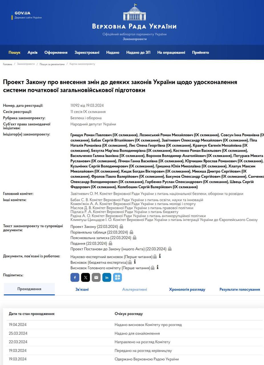В ходе обсуждения члены Комитета по вопросам молодежи и спорта поддержали законопроект 11092 и заявили, что его принятие будет "способствовать совершенствованию начальной военной подготовки и военно-патриотического воспитания украинской молодежи".