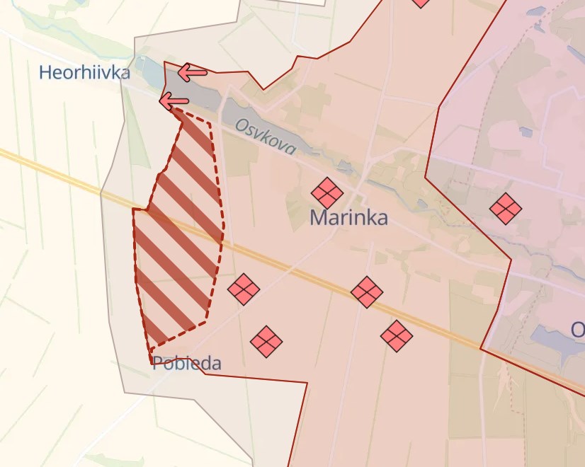 Западнее Марьинки противник продвинулся между Победой и Георгиевкой.