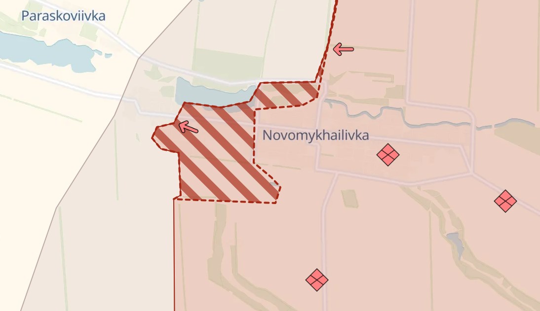 Также россияне заняли почти всю Новомихайловку к юго-западу от Донецка, сообщает Deep State. Российские паблики пишут о захвате всего села.