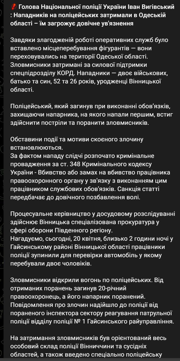 Также полиция подтвердила задержание военных, убивших полицейского на Винничине.