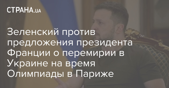 Президент Украины Владимир Зеленский выступил против предложения лидера Франции Эмманюэля Макрона об "олимпийском перемирии". Он считает, что это перемирие глава Кремля Владимир Путин может использовать для перегруппировки сил.