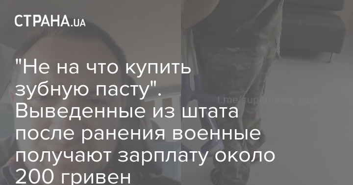 После ранения и вывода за штат военные получают около 200 гривен зарплаты. В сети появилось видео, на котором один из таких военных, лицо которого не показывают, говорит, что ему "не на что купить зубную пасту".