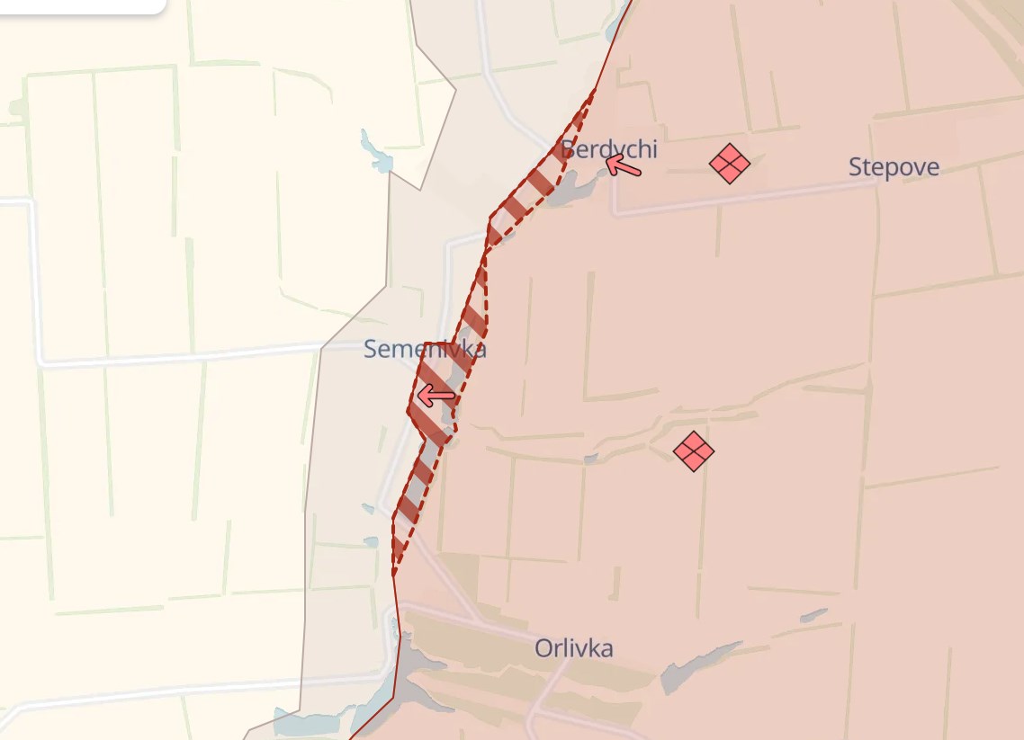Также россияне продвинулись южнее Очеретино - в Бердычах и Семеновке.