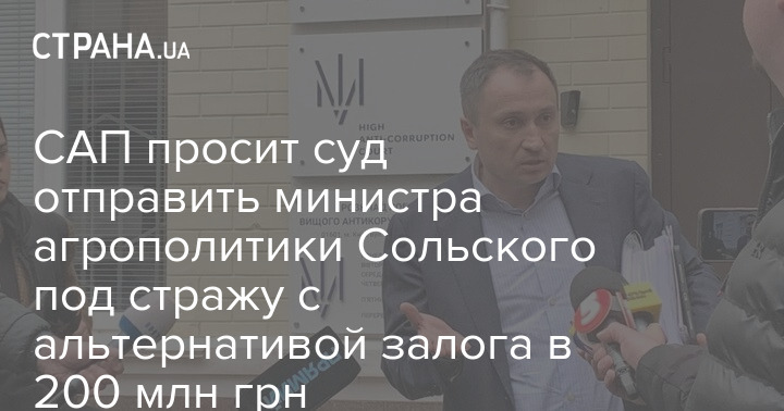 САП просит суд отправить министра агрополитики Сольского под стражу с альтернативой залога в 200 млн грн