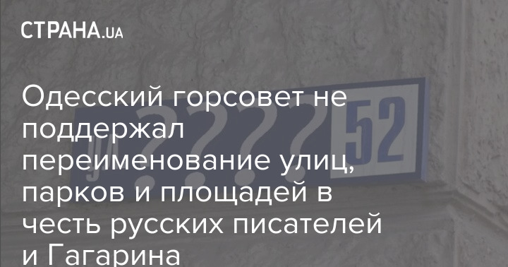Депутаты Одесского горсовета не поддержали переименование улиц в честь русского поэта Василия Жуковского, писателя Ивана Бунина, проспекта Юрия Гагарина и площади Льва Толстого. Однако часть улиц все-таки переименовали.