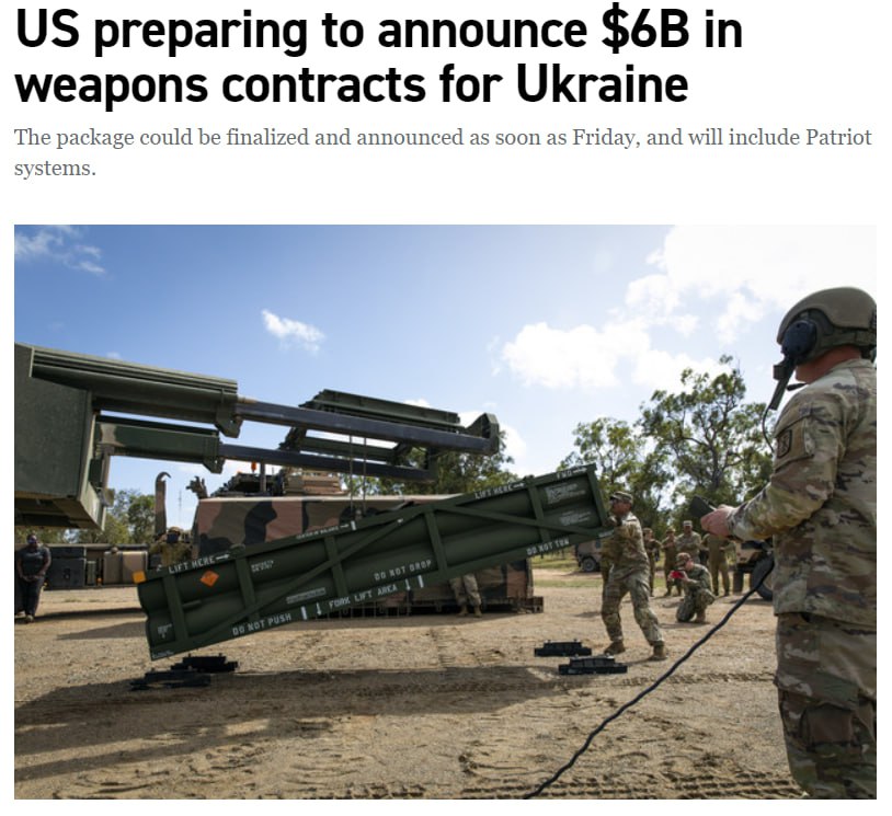 21.39 США готовят в рамках программы USAI (производство оружия для Украины) пакет помощи на общую сумму 6 млрд долларов.