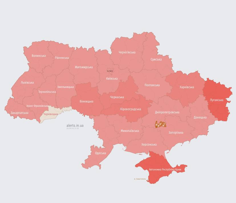 23.03 Воздушная тревога уже по всей Украине. Ракеты летят в сторону западных регионов. Сейчас пролетают над Винницкой областью.