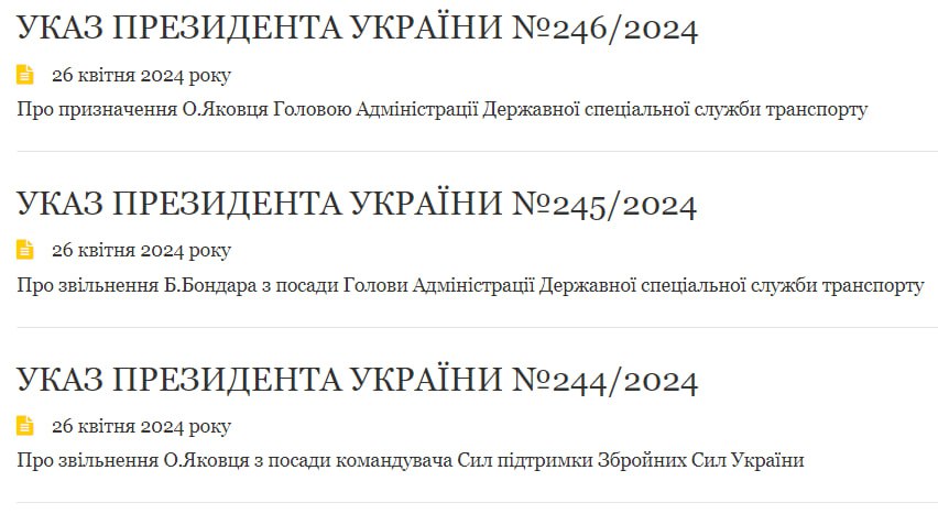 Другим указом на этот пост президент Украины назначил Александра Яковца. До этого Яковец занимал должность командующего Силами поддержки Вооруженных сил Украины, поэтому Зеленский третьим указом уволил его оттуда.