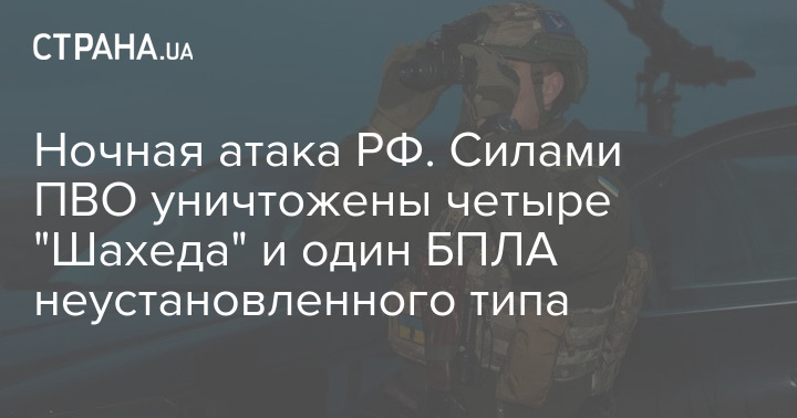 Ночная атака РФ. Силами ПВО уничтожены четыре "Шахеда" и один БПЛА неустановленного типа
