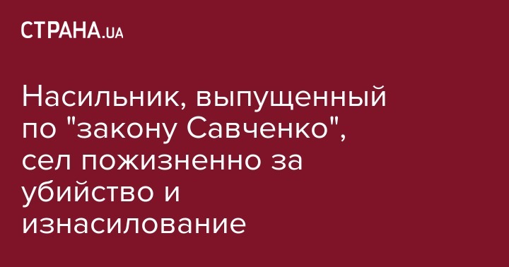 Преступник, который 8 лет назад был приговорен к десяти годам заключения за умышленное убийство с изнасилованием, был досрочно освобожден от отбывания наказания по так называемому "закону Савченко".