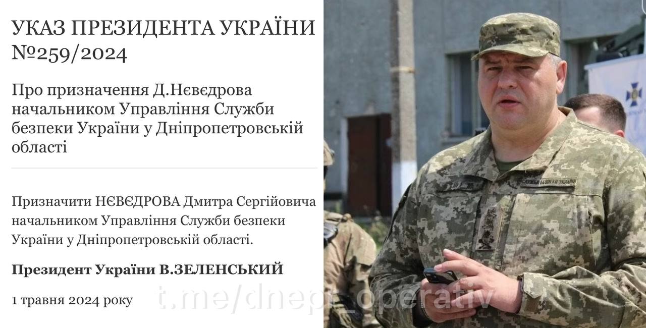 Указом президента с должности начальника управления СБУ в Николаевской области уволен Дмитрий Неведров. Его назначили на аналогичную должность в Днепропетровской области.