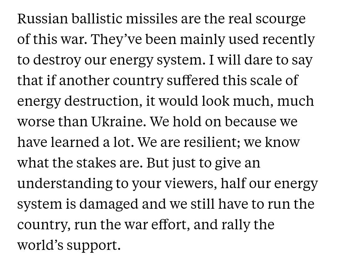 "Половина нашей энергетической системы повреждена, а мы все еще должны управлять страной, вести военные действия и собирать поддержку всего мира", - сказал Кулеба.
