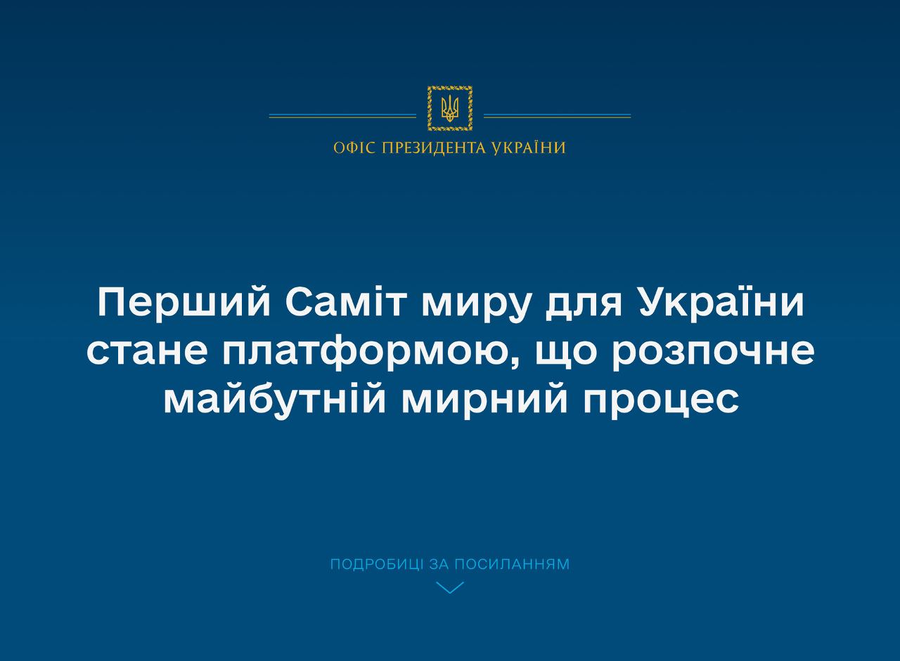 "Первый Саммит мира для Украины станет платформой, которая начнет будущий мирный процесс", - говорится в сообщении ОП.