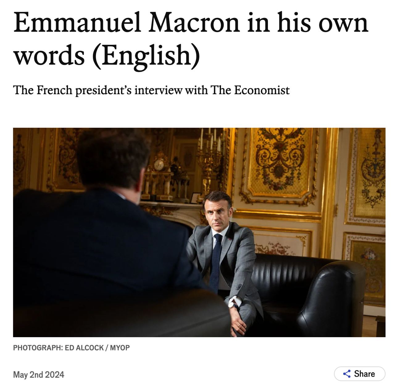 "Если бы русские прорвались через линию фронта, если бы поступил запрос от Украины (чего сегодня нет), нам по закону пришлось бы задать себе этот вопрос", - заявил президент Франции.