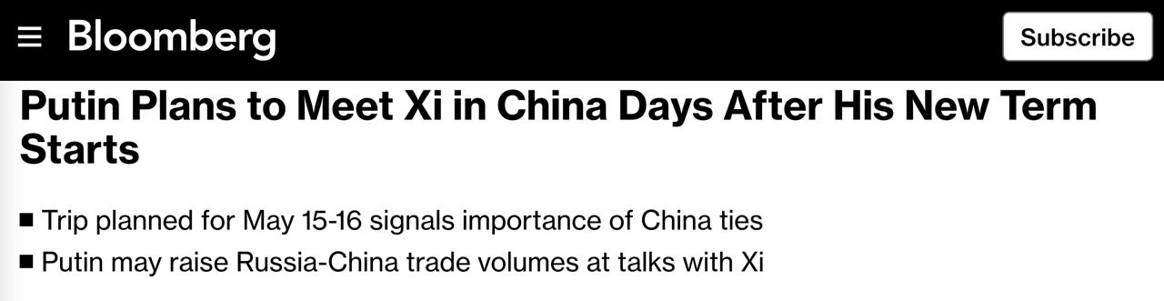 Путин встретится с Си Цзиньпином в Китае через несколько дней после начала своего нового срока