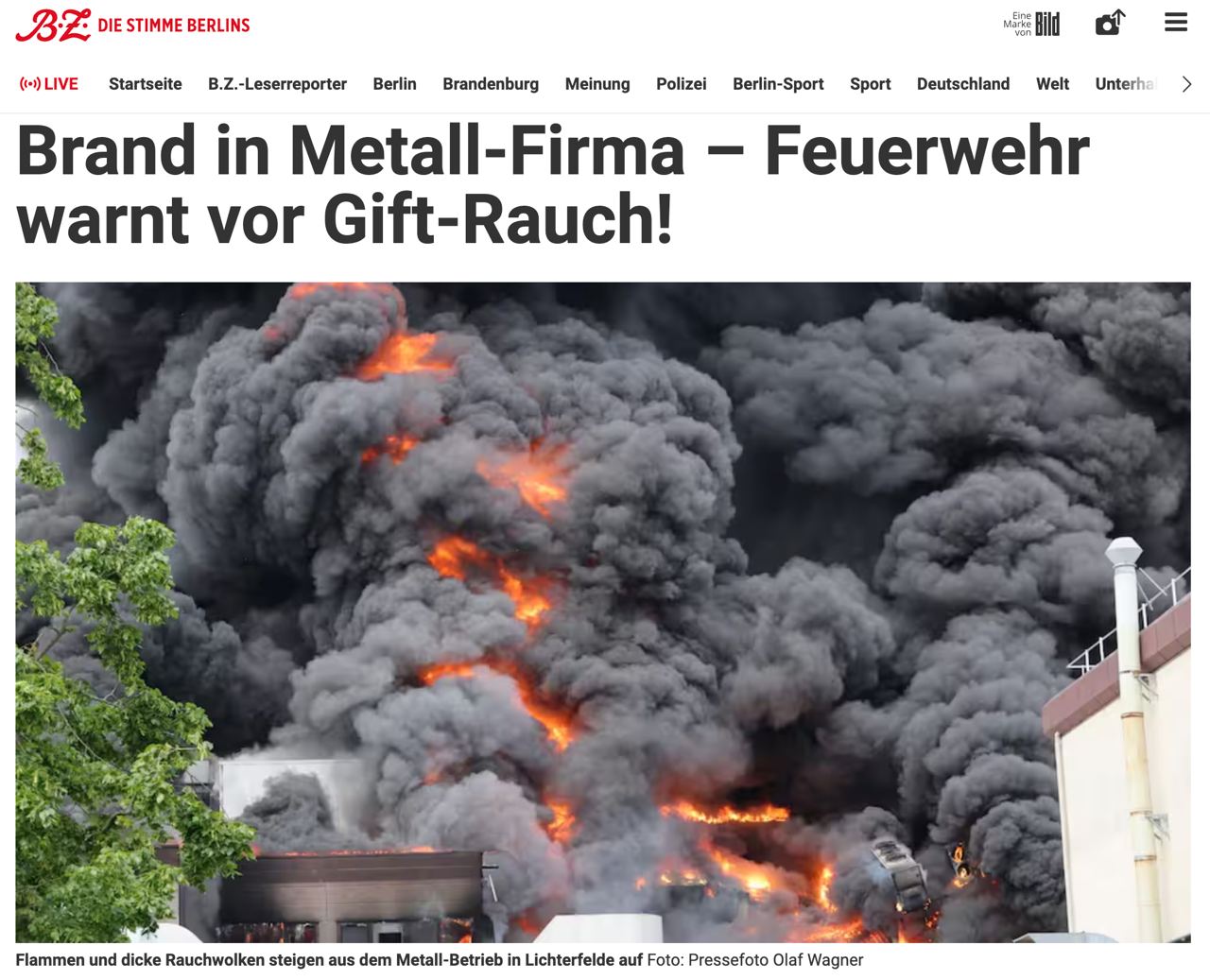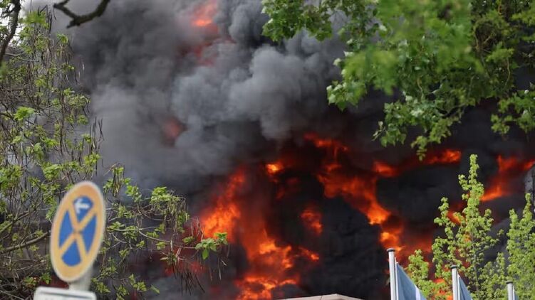 Огонь охватил значительную площадь предприятия, а часть столицы ФРГ заволокло ядовитым дымом. По имеющимся данным, на участке, где произошло возгорание, хранились серная кислота и цианид меди.