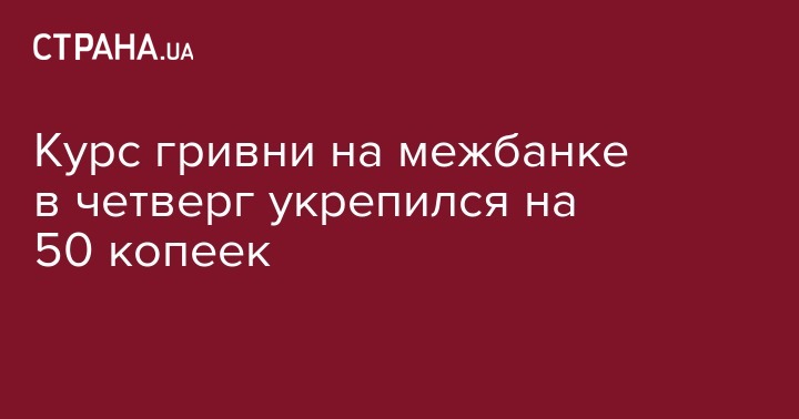 Курс гривни на межбанке в четверг укрепился на 50 копеек