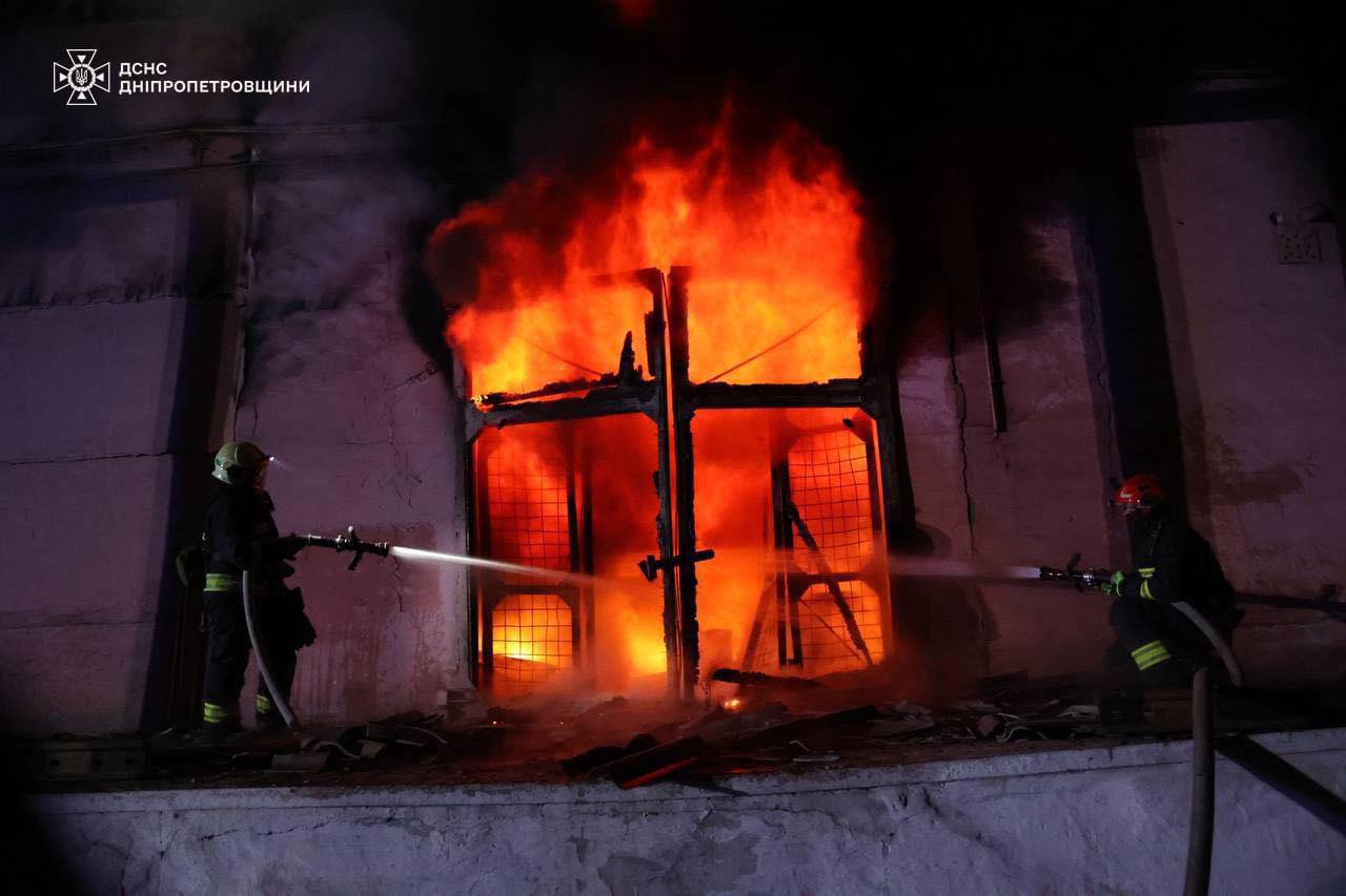 09:41 Кадры пожара в Днепре после атаки "Шахедов". Сообщалось о падении обломков на объекты инфраструктуры.