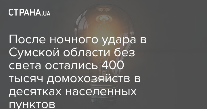 После ночного удара в Сумской области без света остались 400 тысяч домохозяйств в десятках населенных пунктов