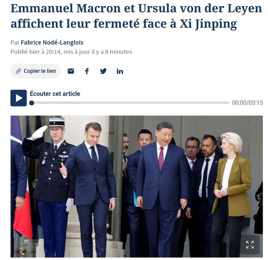 Le Figaro считает, что "обмен мнениями между президентом Франции и китайским лидером был отмечен разногласиями по вопросам торговли".