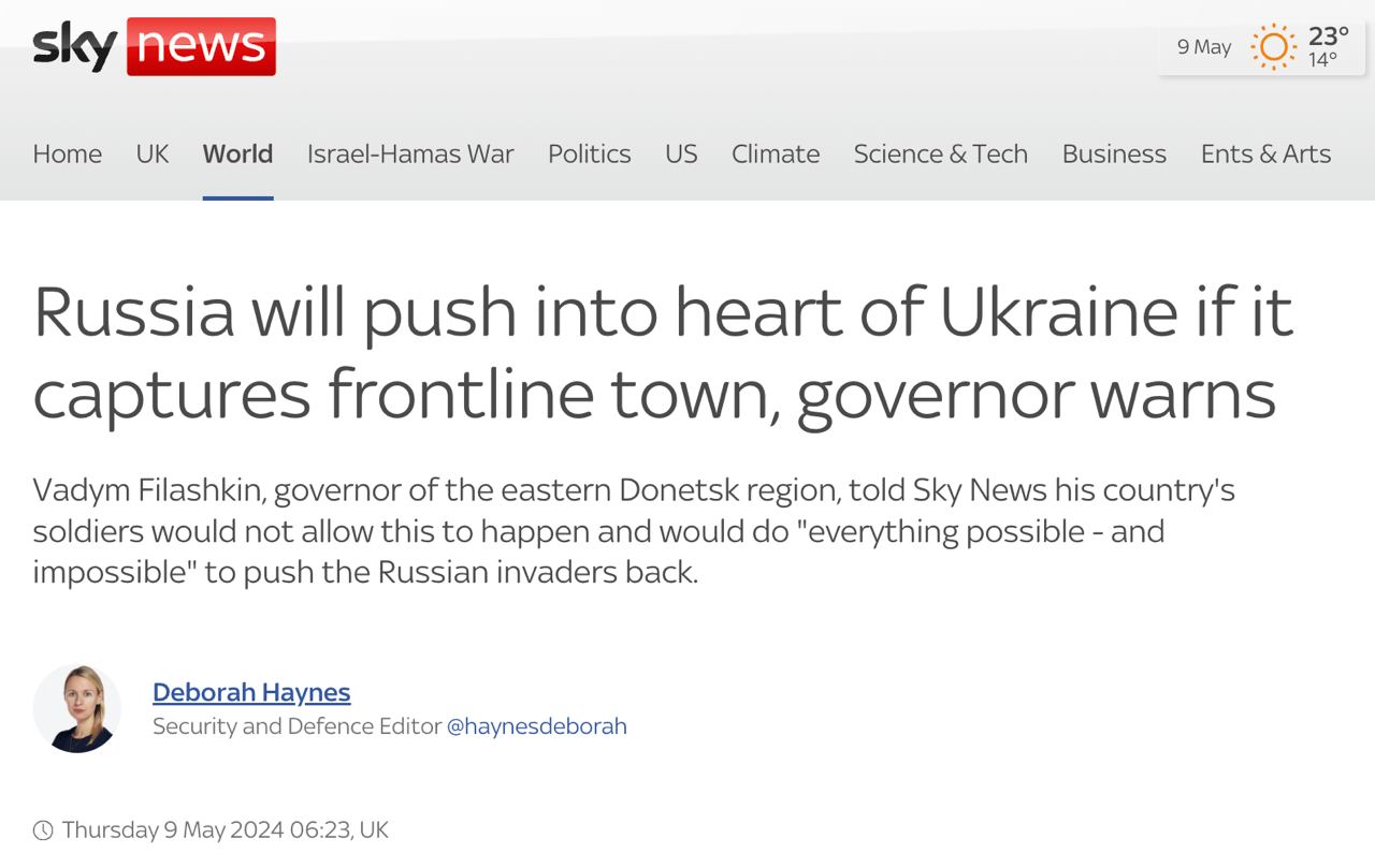 09.40 В случае захвата Донбасса армия РФ "прорвется в самое сердце Украины", заявил донецкий губернатор Филашкин в интервью Sky News.