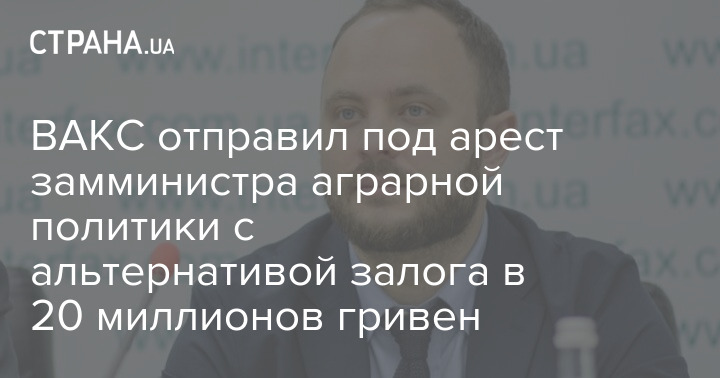 ВАКС отправил под арест замминистра аграрной политики с альтернативой залога в 20 миллионов гривен