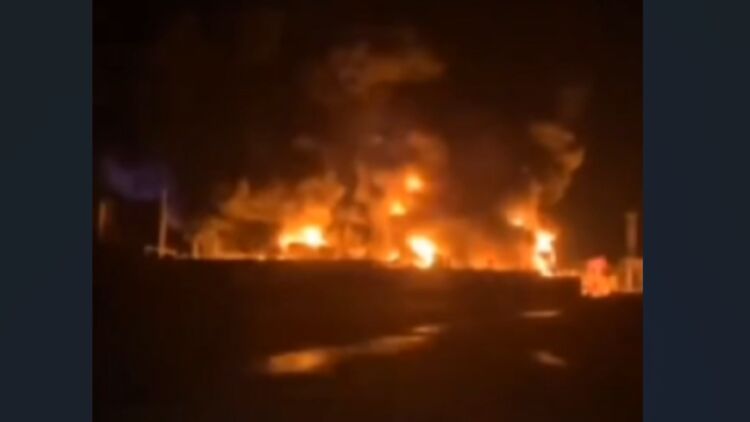 Последствия прилета по НПЗ в Калужской области РФ. Скриншот видео