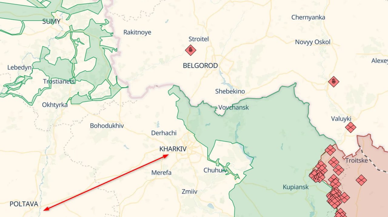 Deep State сообщает, что наступление идет на двух участках: в направлении непосредственно Харькова, в селах Стрелка-Красное-Пыльная-Борисовка, а также в сторону Волчанска.