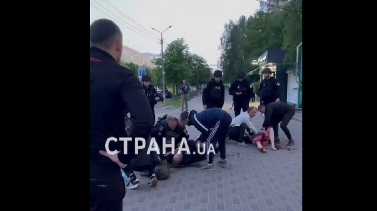 Видео первых минут после взрыва гранаты в Броварах, брошенной в полицейского