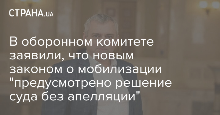 Член комитета Верховной Рады по вопросам национальной безопасности, обороны и разведки Александр Федиенко заявил, что новым законом о мобилизации "предусмотрено решение суда без апелляции".