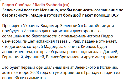 Это будет первый официальный визит Зеленского в Испанию, хотя в октябре 2023 года он уже прилетал в Гранаду на один из европейских саммитов.