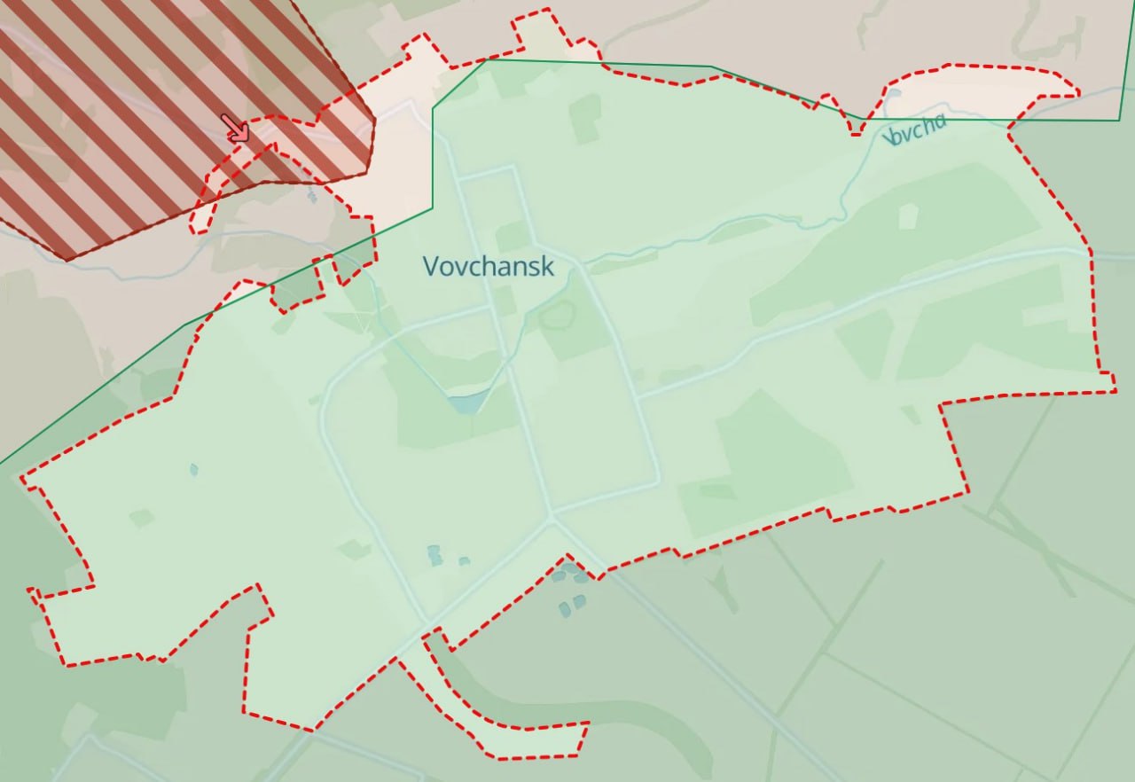 Судя по карте ресурса, россияне закрепились к северу от Волчанска на участке Гатище - Плетеневка, а также на северной окраине самого города.