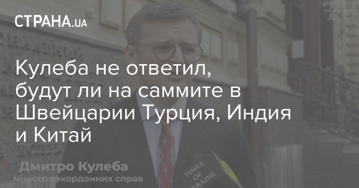 Глава МИД Украины Дмитрий Кулеба отказался сообщить, будут ли на саммите в Швейцарии Турция, Индия и Китай.