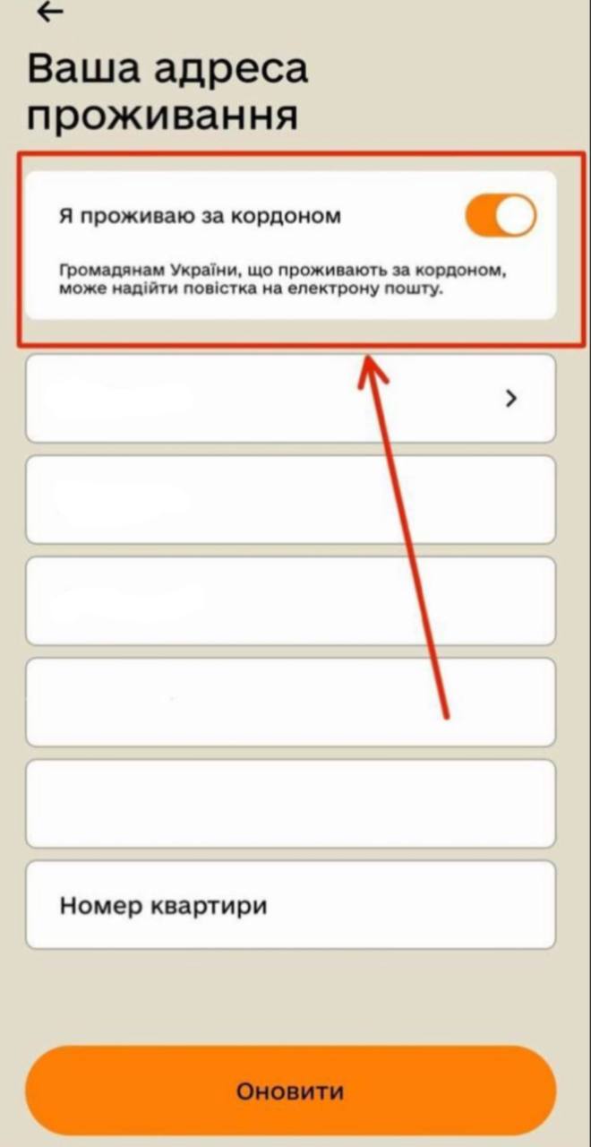 При обновлении данных через приложение, если выбрать опцию "Я проживаю за границей", под ней была приписка, что таким гражданам повестка может прийти на е-mail.